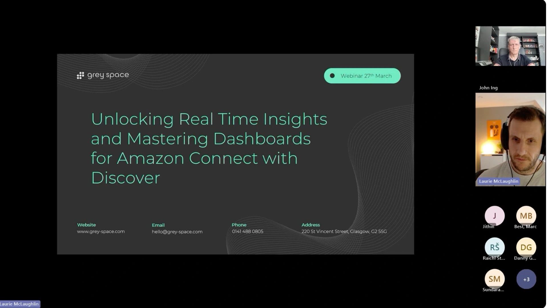 An exclusive Webinar with Laurie McLaughlin, Co-Founder of Grey Space, who shared how they have leveraged their extensive knowledge and experienced of contact centres to develop the Discover product, which is now available for Amazon Connect